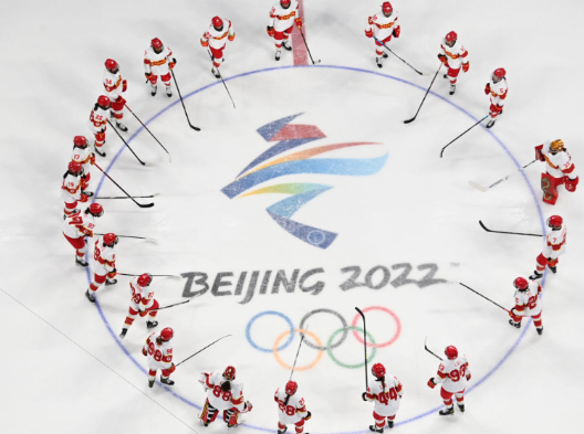 △北京2022年冬奥会是迄今女性参赛比例最高、参与项目最多的一届冬奥会。图为中国国家女子冰球队在赛场。