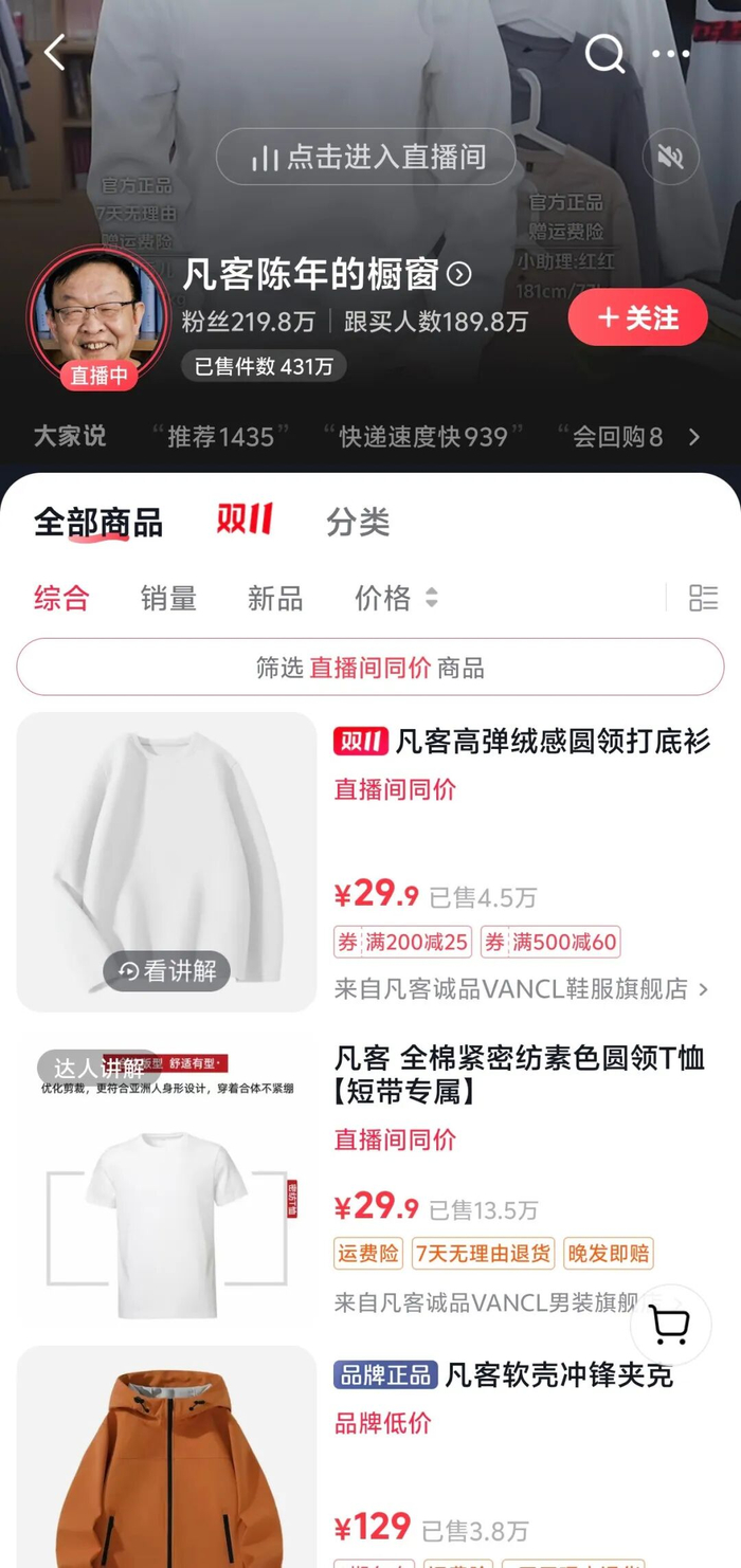 真正让这个曾深陷危机的品牌重新焕发生机的是,凡客的品牌转型与直播策略。