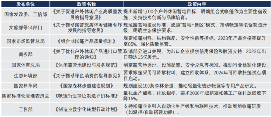 国家多部门出台政策为露营经济筑牢基础。发改委与工信部在《关于促进户外休闲产业高质量发展的指导意见》中,明确新增1000个户外休闲营地,将组合式帐篷列为主要住宿设施;文旅部等14部门通过政策规范营地建设,鼓励“营地+景区”模式,2023年户外帐篷出口额达15亿美元。