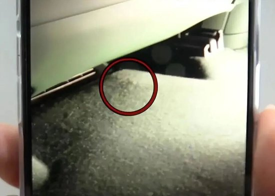 10月14号的晚上,余先生买了一个脚垫,然而在换脚垫的时候,他突然间发现在主驾的座椅的正下方,它有一个硬质的隆起,用手是按不下去的余先生说照片中用红圈圈出来的位置,就是当时摸到硬质隆起的地方。