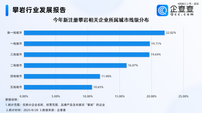 2024年8月,周鸿祎、王石担任投资人的攀岩生活方式品牌“我攀”在北京开设首家旗舰店。目前,攀岩行业已经诞生了全国连锁香蕉攀岩、区域连锁奥攀、蓝天、熊猫、Rockplus等品牌,大多集中在一线城市和省会城市。