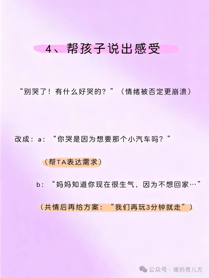 在这个阶段,家长们需要注意观察和倾听孩子。如果秩序被打乱,允许孩子把情绪哭出来,这样他们自己就会逐渐接纳已经发生的事实。
