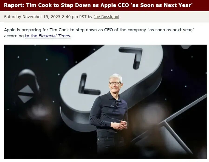 多家外媒近期爆料称,库克可能最早于明年卸任,苹果内部已经在加速推进继任者的选拔工作。据小事哥了解,目前呼声最高的是现任硬件工程高级副总裁约翰·特努斯。