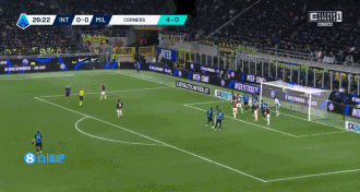 第27分钟,国米左侧角球机会,球罚向禁区,前点阿切尔比头球攻门击中立柱弹出。↓