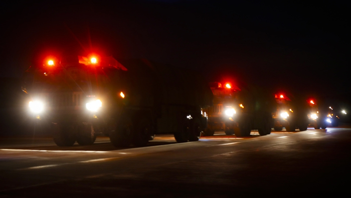 数十辆战车星夜编队