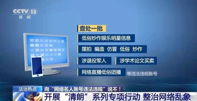 今年以来,中央网信办持续开展“清朗”系列专项行动,对短视频领域恶意营销乱象、AI技术滥用、整治涉企网络“黑嘴”“自媒体”发布不实信息、恶意挑动负面情绪问题、网络直播打赏乱象等网络乱象进行了专项整治。