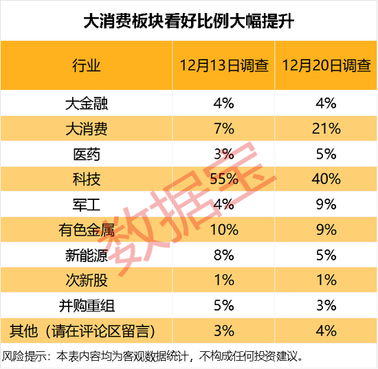 大消费板块看好比例大幅提升