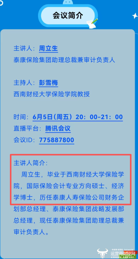 日前,泰康人寿将迎来一把手变更,不过目前公司官网上信息暂未变动,而运营商财经网发现,公司审计负责人周立生颇受重视,常务副总裁薛继豪之下就是他,引人关注。周立生的表现如何?