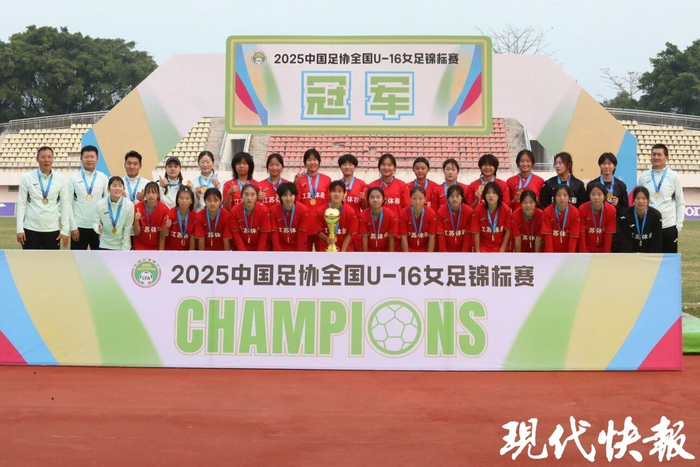 现代快报讯(通讯员 李春花 记者 高达)12月22日,江苏U16女足3:2战胜上海U16女足斩获2025中国足协全国U-16女足锦标赛冠军。现代快报记者注意到,参赛大名单中12人来自苏州,分别是杨雨萱、张小乐、李泓蕾、王梦婷、李万照、李启娴、赵思晴、徐晓棠、贺涵若、王海欣、杨佰帅、郭凌菲。