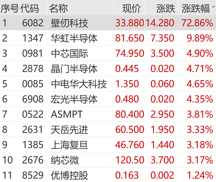 1月2日上午,在新股壁仞科技的带动下,港股半导体板块集体狂飙,晶门半导体、中芯国际等多股大涨。