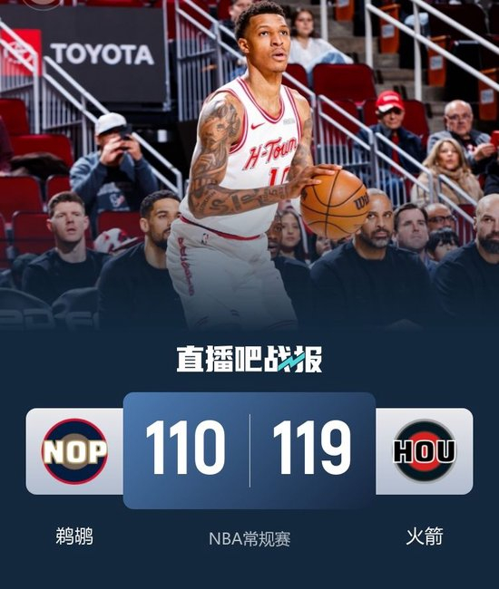 鹈鹕(10-35):墨菲21分3板4助、锡安20分5板3助、奎因15分4板5助、普尔13分4板2助、贝11分4板2助、米西10分7板4助2帽、皮维7分3板3助2断、霍金斯6分3板2助3断、马特科维奇5分3板、费尔斯2分3板2助