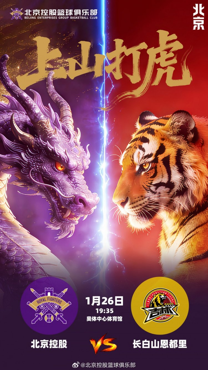 今晚面对吉林男篮 紫禁龙遇上东北虎