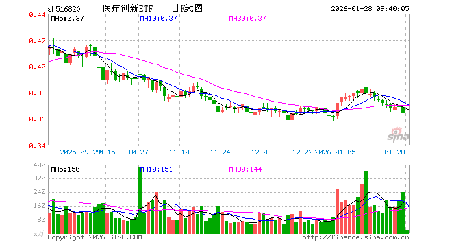1月28日,医疗创新ETF(516820)开盘跌0.27%,报0.363元。医疗创新ETF(516820)重仓股方面,药明康德开盘涨0.22%,恒瑞医药涨0.42%,迈瑞医疗跌0.03%,爱尔眼科跌0.09%,片仔癀涨0.89%,新和成跌0.51%,华东医药涨0.00%,康龙化成涨0.10%,艾力斯跌0.41%,甘李药业涨0.00%。