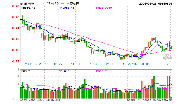 生物医药ETF(159859)开盘涨0.00%,重仓股药明康德涨0.22%,复星医药涨0.04%