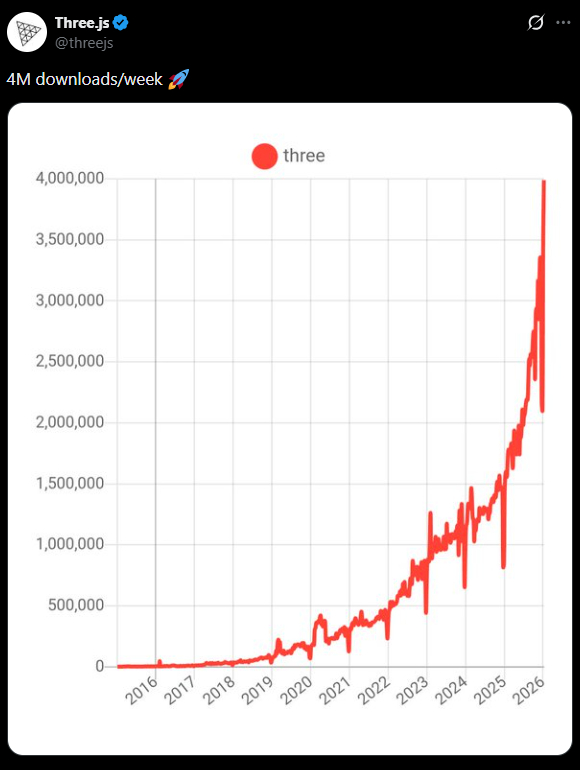 Three.js 就成了那个绕不开的、统治级的稳定播放器,于是,数据就蹭蹭蹭暴涨了。
