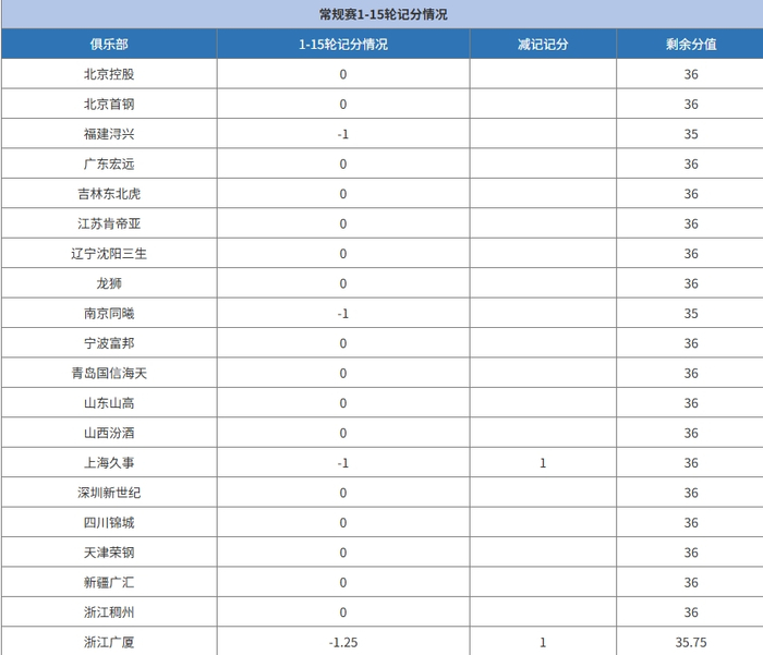 为了保障篮球运动健康、可持续发展,践行“办人民满意的联赛”,营造和谐、文明、正能量的CBA联赛赛场氛围,构建安全、有序的观赛空间,共同维护CBA联赛品牌形象和文明赛场建设,吸引更多青少年现场观看篮球赛事,特制定CBA联赛青少年友好型赛场记分制度。在本赛季常规赛前15轮中,山西没有被记分。