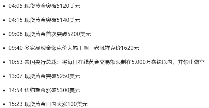 金价真的是来不及报盘。现货黄金站上5300美元/盎司,续创新高。