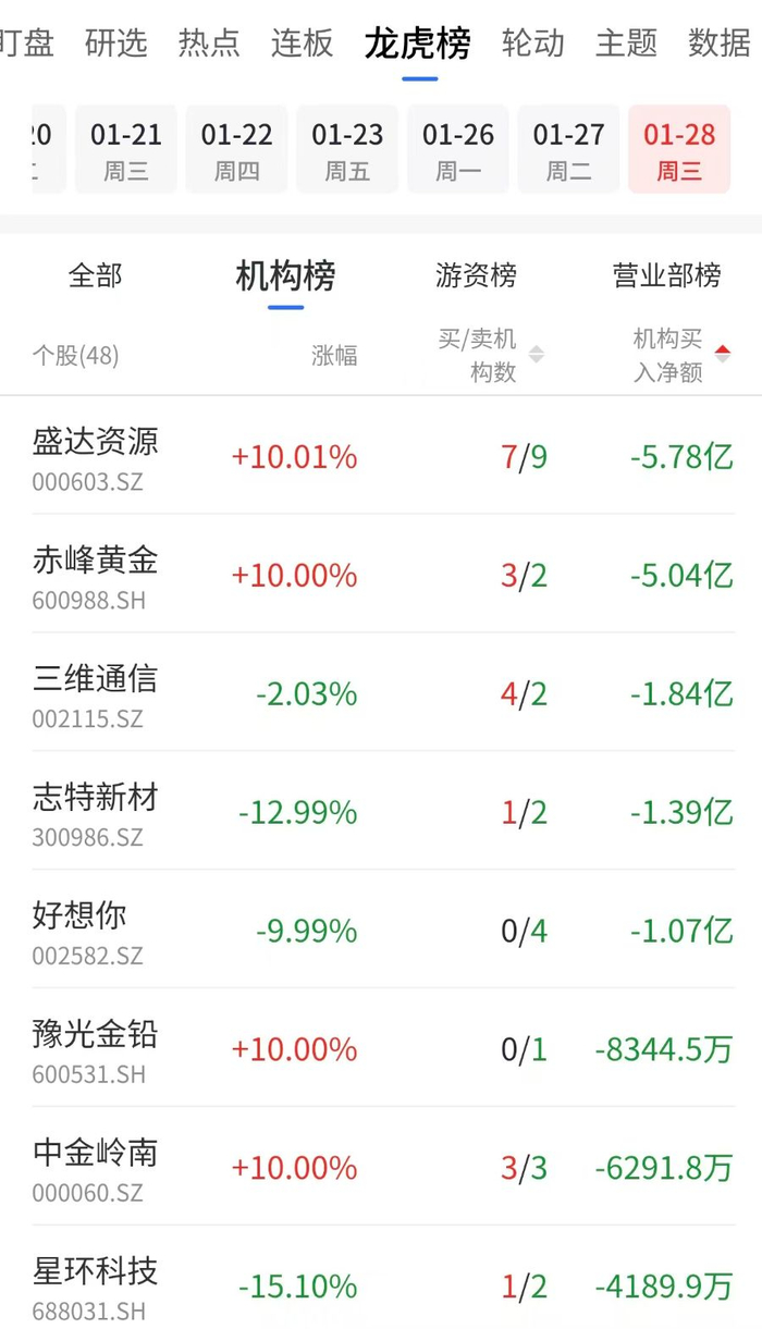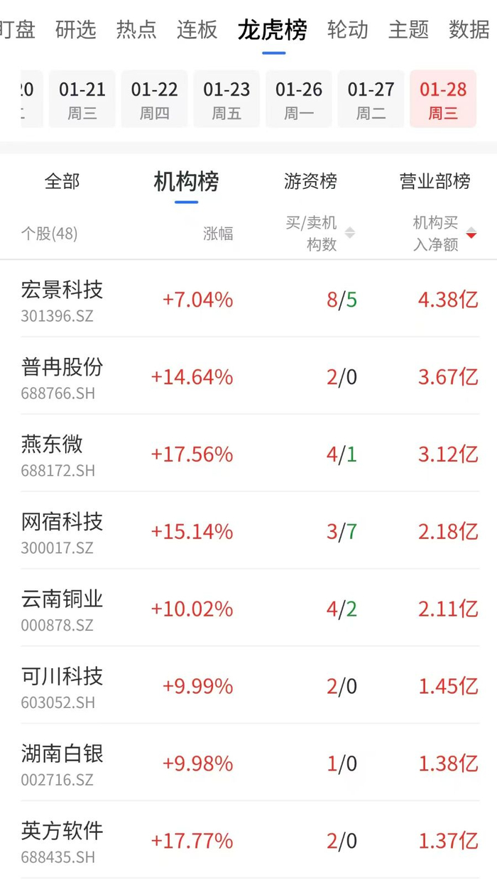 机构龙虎榜