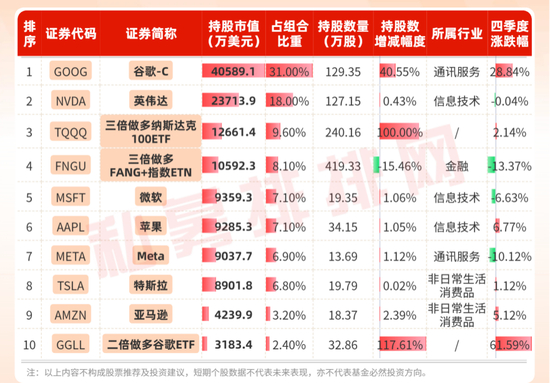 四季度,最引人注目的变化是,谷歌取代英伟达,成东方港湾的第一大重仓股。
