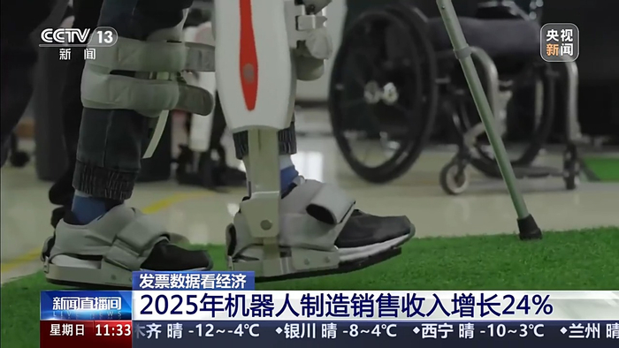 国家税务总局发布的最新数据显示,2025年,我国制造业智能化发展步伐加快。机器人、智能消费设备等制造业销售收入大幅增长。发票数据显示,2025年,我国智能设备制造业销售收入同比增长28.1%,特别是“人工智能+”加快落地,智能消费设备制造、机器人制造同比分别增长32.4%和24%。