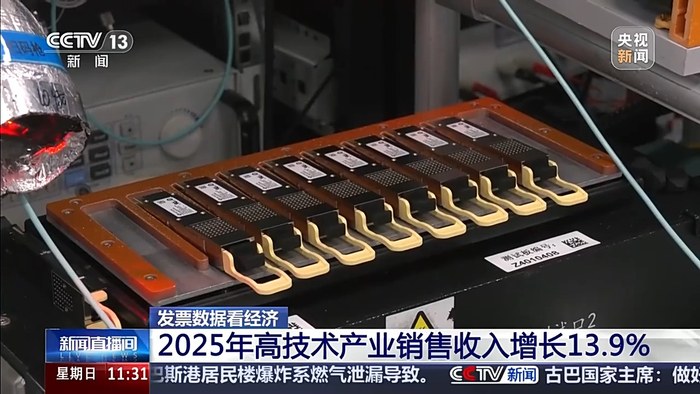 国家税务总局税收大数据分析显示,2025年,我国科技创新与产业创新融合加快,高技术产业销售收入稳步提升。发票数据显示,2025年全国战略性新兴产业茁壮成长,高技术产业销售收入同比增长13.9%,其中高技术制造业、高技术服务业同比分别增长10.1%和16.6%。