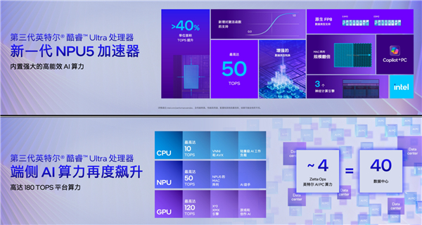 Intel宣称,迄今已出货的AI PC处理器,累计算力已经达到了4 ZOPS,也就是4000000000 TOPS,相当于40个大型数据中心!