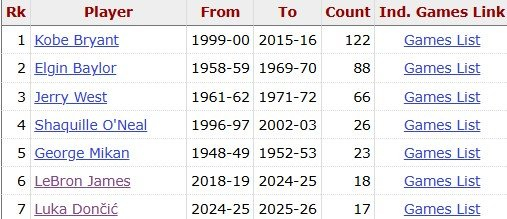 据统计,这是东契奇湖人生涯第17场40+,距离追平詹姆斯仅差1场,暂居队史第7位。