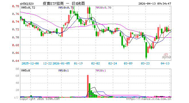 4月13日,疫苗ETF招商(561920)开盘跌0.55%,报0.718元。疫苗ETF招商(561920)重仓股方面,智飞生物开盘跌0.51%,沃森生物跌1.11%,万泰生物跌0.90%,辽宁成大跌0.68%,康泰生物跌0.71%,甘李药业跌0.80%,特宝生物跌0.40%,山东药玻涨0.00%,华兰生物跌0.13%,复星医药跌0.57%。