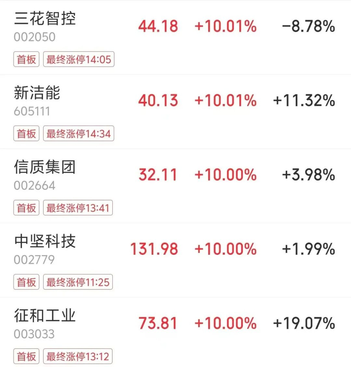 机器人概念股上演涨停潮。和顺电气、美力科技“20CM”涨停,金盘科技、征和工业股价创历史新高;千亿龙头三花智控A股直线涨停,H股最高涨近14%,位居万得A股人气榜第一。