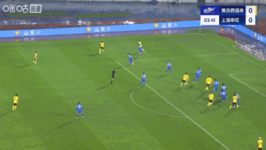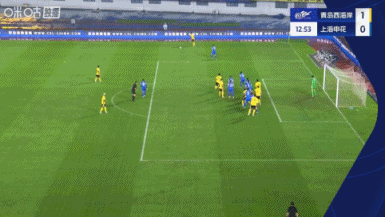 第4分钟,青岛西海岸左路传中,禁区内混乱中一脚射门,被蹭了一下稍稍偏出球门↓