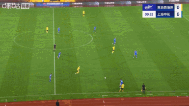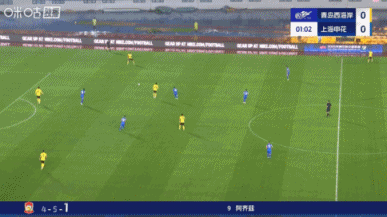 第2分钟,青岛西海岸后场左侧长传,申花后防线冒顶,阿齐兹杀入禁区内左侧挑射稍稍偏出↓