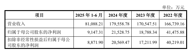 2022年至2025年上半年,公司分别实现营收16.67亿元、17.05亿元、17.96亿元和8.11亿元,同期公司的归母净利润分别为4.15亿元、1.88亿元、2.15亿元和9147.31万元。
