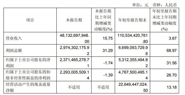 10月30日晚间,赛力斯(601127.SH)发布的2025年第三季度报告显示,今年三季度,赛力斯营收约481.33亿元,同比增长15.75%;归属于上市公司股东的净利润约23.71亿元,同比下降1.74%。