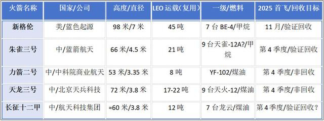 以下表格对比五款火箭关键参数,数据基于公开来源,不保证权威性,仅供参考: